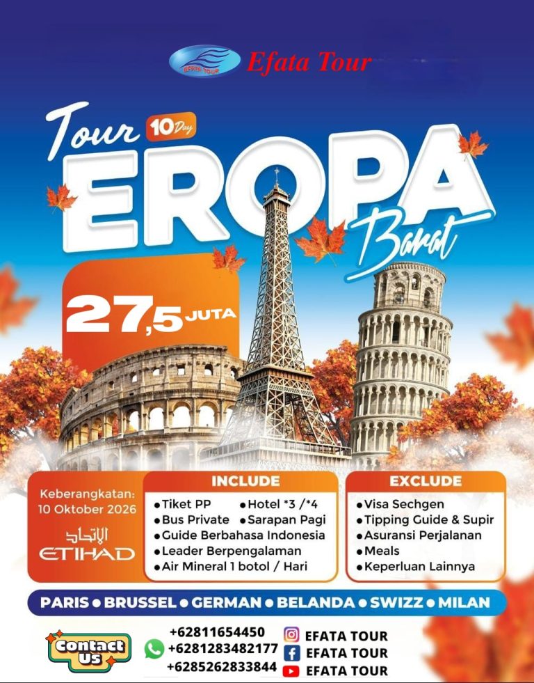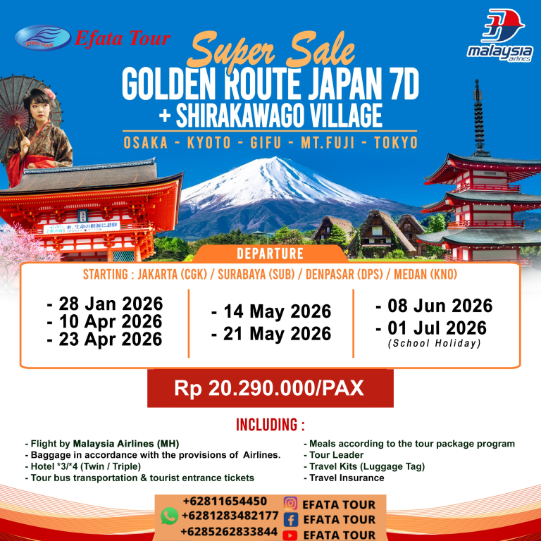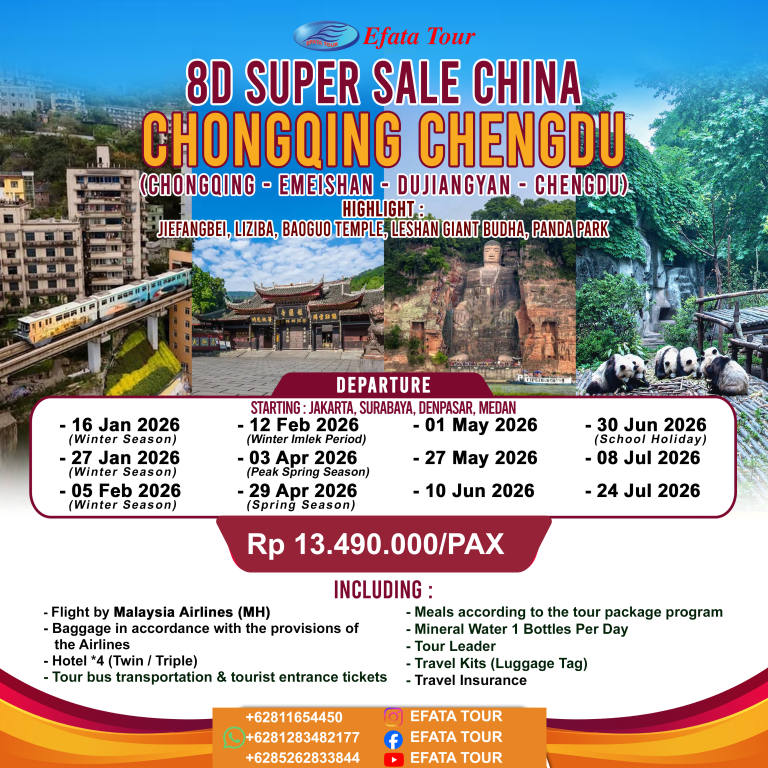 TOUR INTERNASIONAL ITINERARY EROPA 10D 9N 2026 7D SUPER SALE GOLDEN ROUTE JAPAN + SHIRAKAWAGO 4 HARI 3 MALAM BANGKOK – PATTAYA SPESIAL DINNER CRUISE (SIC 2 CAN GO) 5D WONDERFUL VIETNAM HANOI SAPA FANSIPAN WITH HALONG BAY CRUISE 6D4N ENCHANTING DANANG - HOI AN - BA NA HILLS GRAND SALE KOREA 6 DAY (NAMI ISLAND + SEOUL) 7H6M TOUR 3 NEGARA MALAYSIA SINGAPORE THAILAND 7D GRAND SALE AUSTRALIA STARTING 4 CITIES TOUR PHUKET (4 HARI 3 MALAM) 10D7N BEST OF TURKI + CAPPADOCIA 8D CHINA CHONGQING + CHENGDU PAKET TOUR 6D5N HAINAN LUXURY 8D NEW SUPER SALE BEIJING + SHANGHAI
